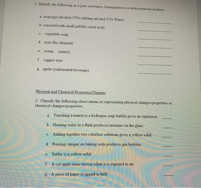 Solved 1 Identify The Following As A Pure Substance Chegg Com